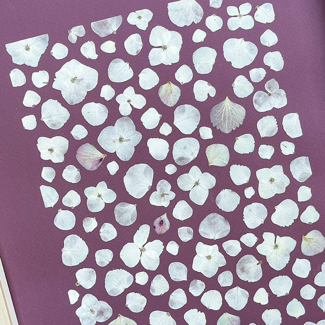 Utilizamos las técnicas de prensado y secado para capturar la delicadeza, colores y texturas de flores, ramas y hojas.
