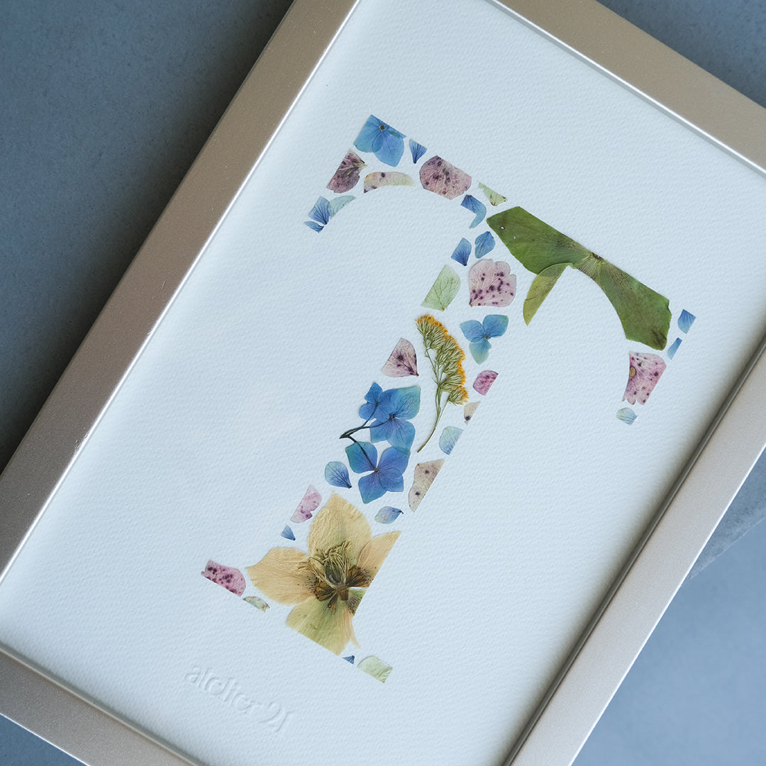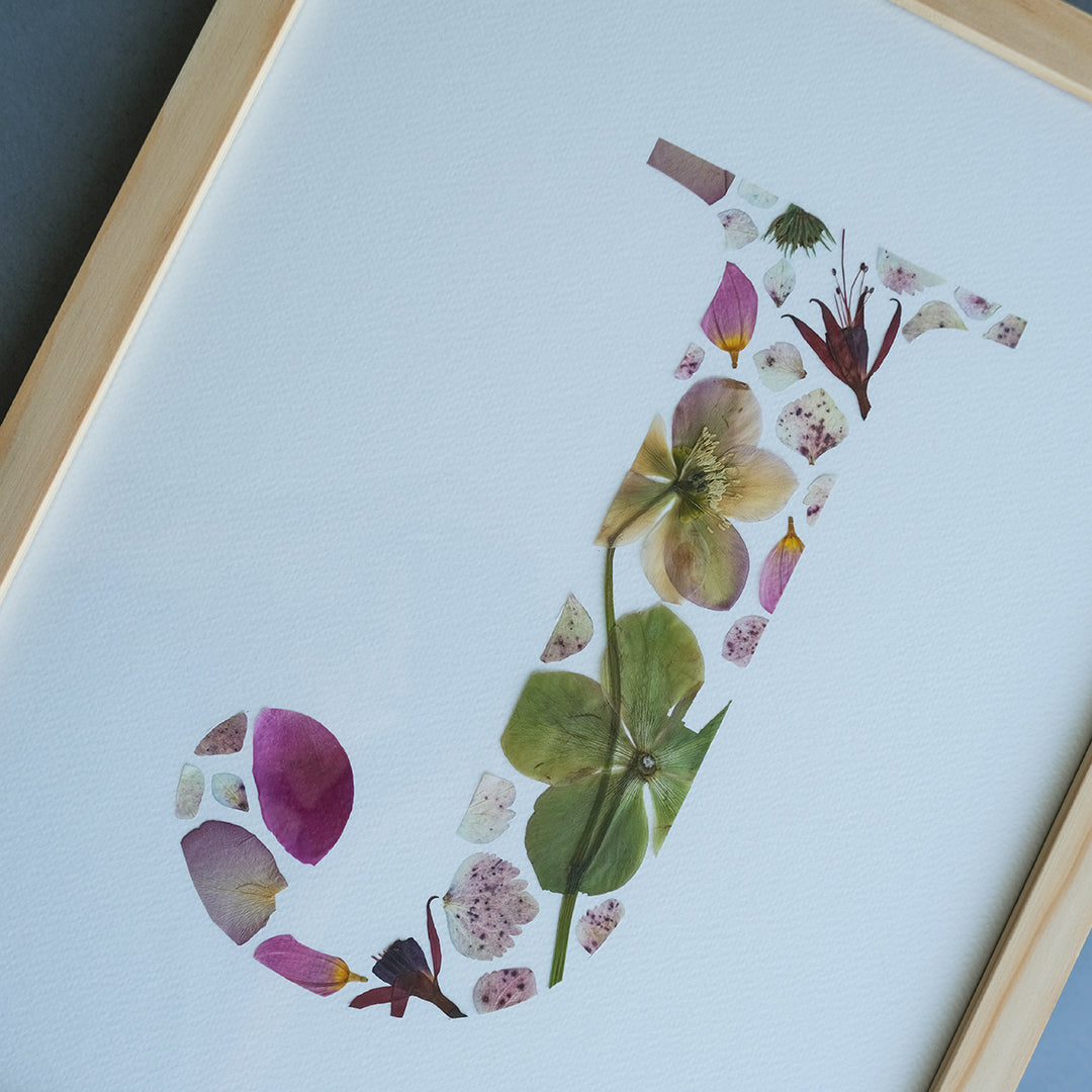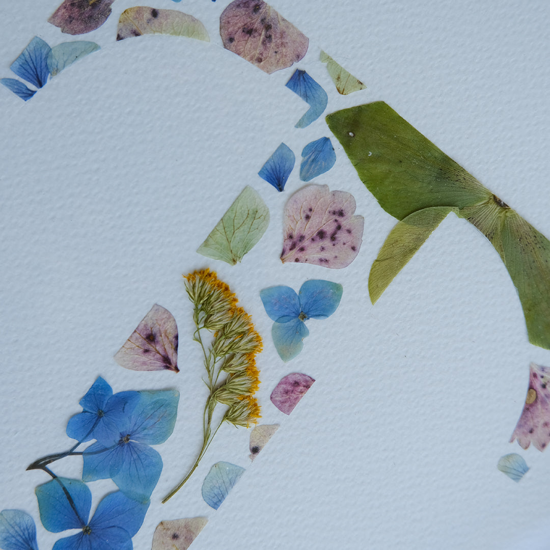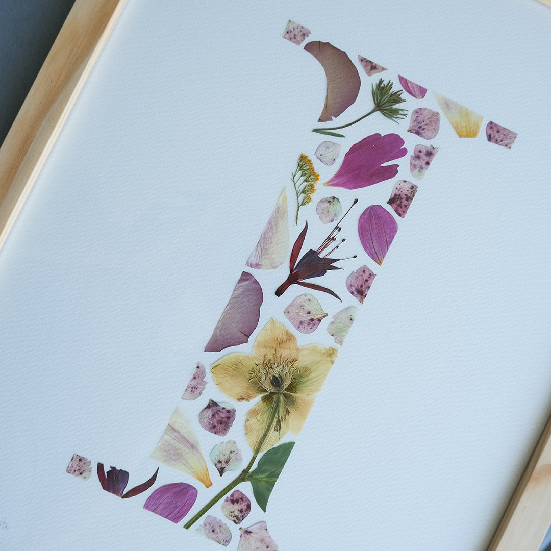 A través de la técnica del prensados de distintas flores y pétalos, componemos la inicial del nombre que tu elijas.